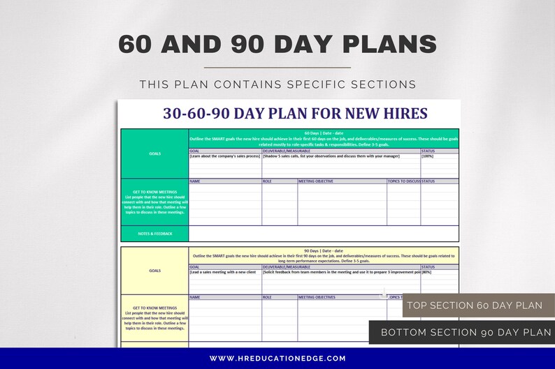 30 60 90 day Plan: New Hire Plan HR Excel Spreadsheet Employee Goals