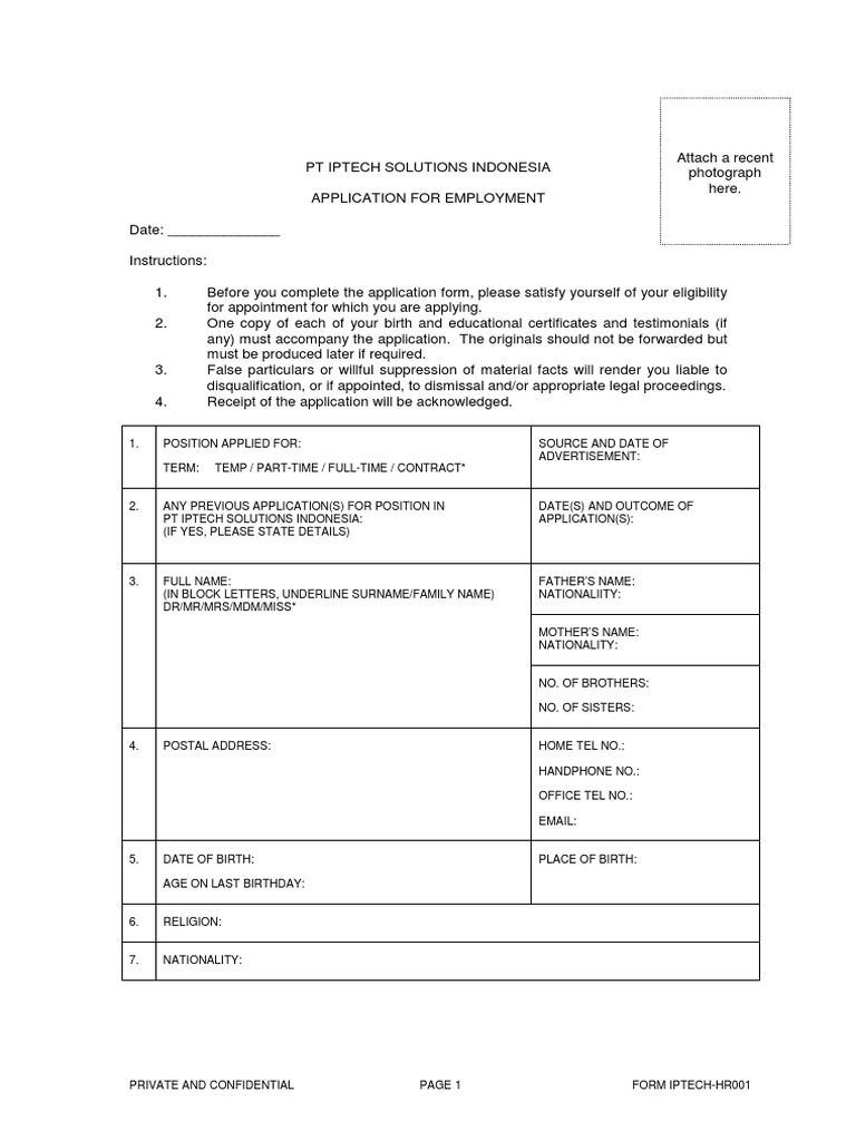 HR Form PDF Employment Human Resources
