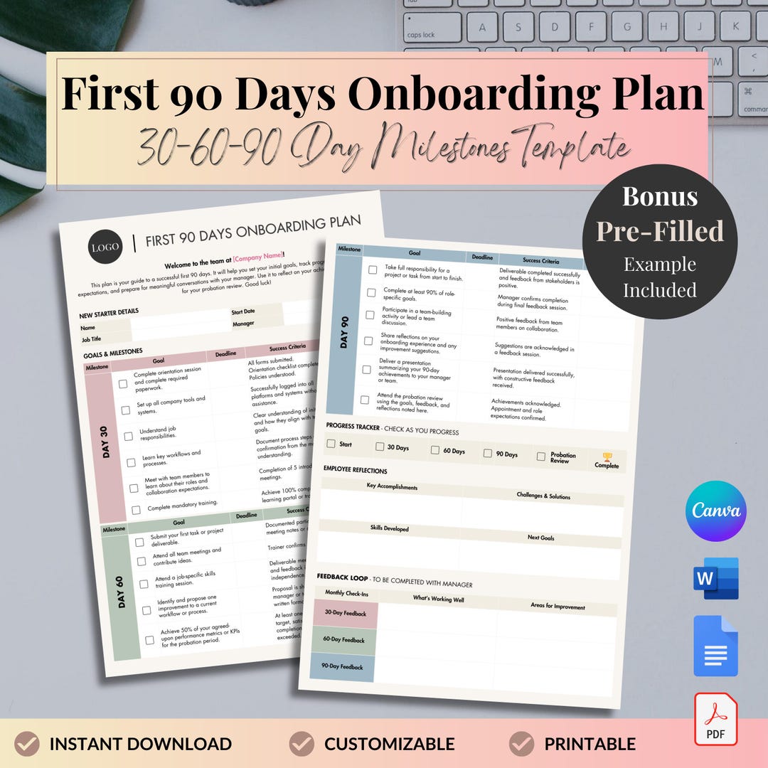 90 day Onboarding Plan Template: HR Milestone Tracker (digital Download