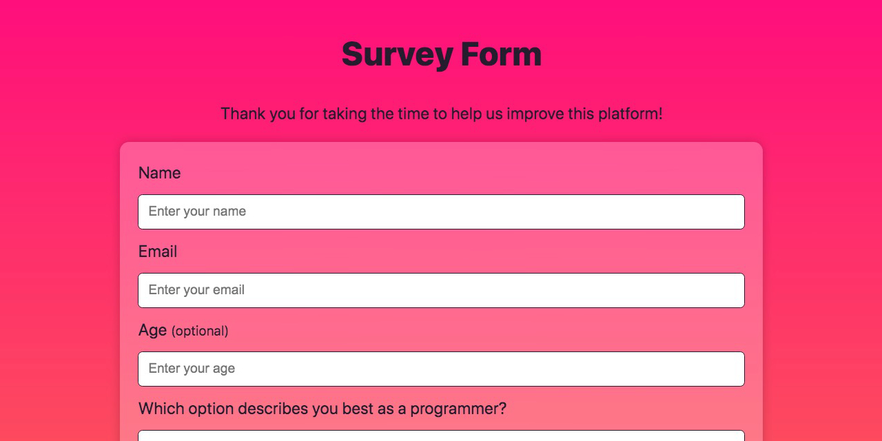 HTML Building a Survey Form HTML CSS The freeCodeCamp Forum