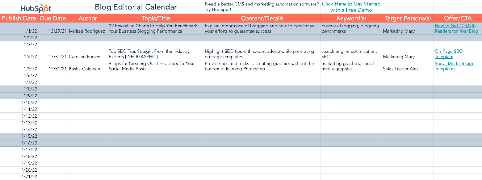 Content Calendar Template Hubspot 5 Outils Gratuits Pour Creer Un