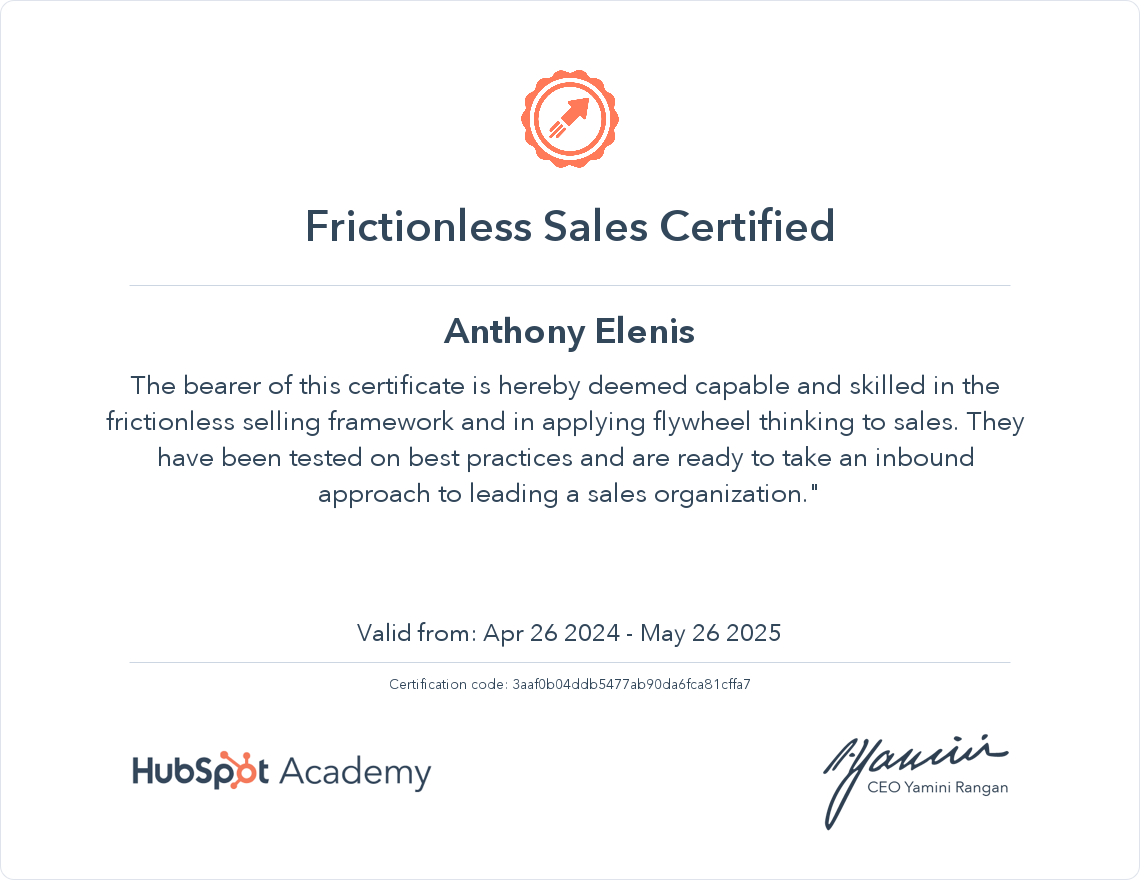 HubSpot Frictionless Sales Certification Bridge Kid Design has it