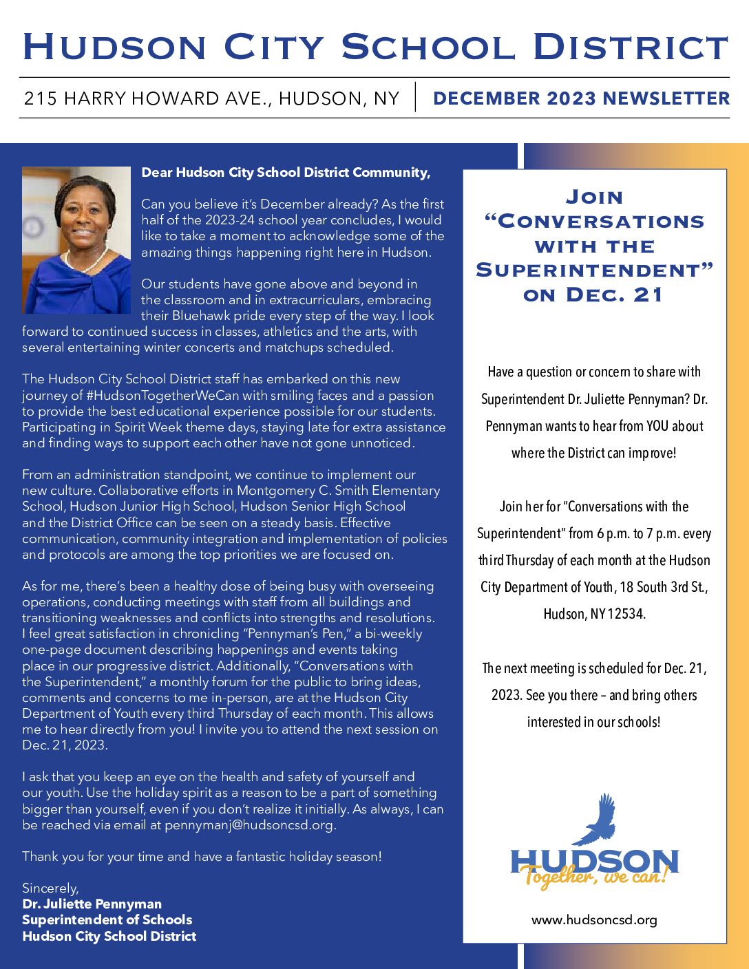 December 2023 Hudson City School District Newsletter Hudson City