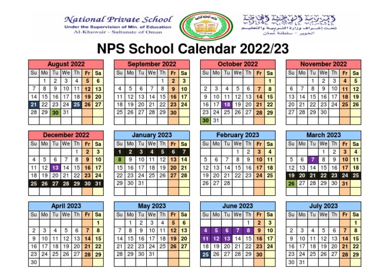 NPS School Calendar 2022 2023 PDF