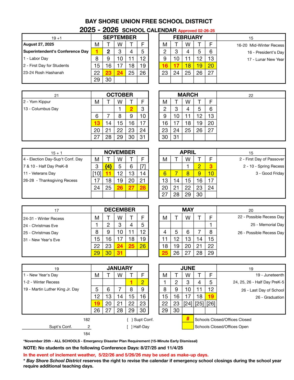 Bay Shore UFSD School Calendar 25 26 revised EduCounty