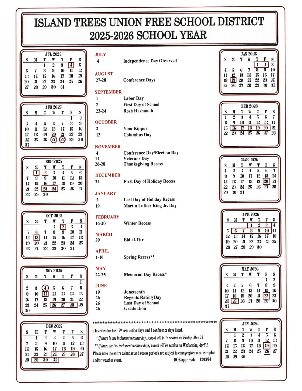 ISLAND TREES UFSD Calendar 25 26 REVISED PDF EduCounty
