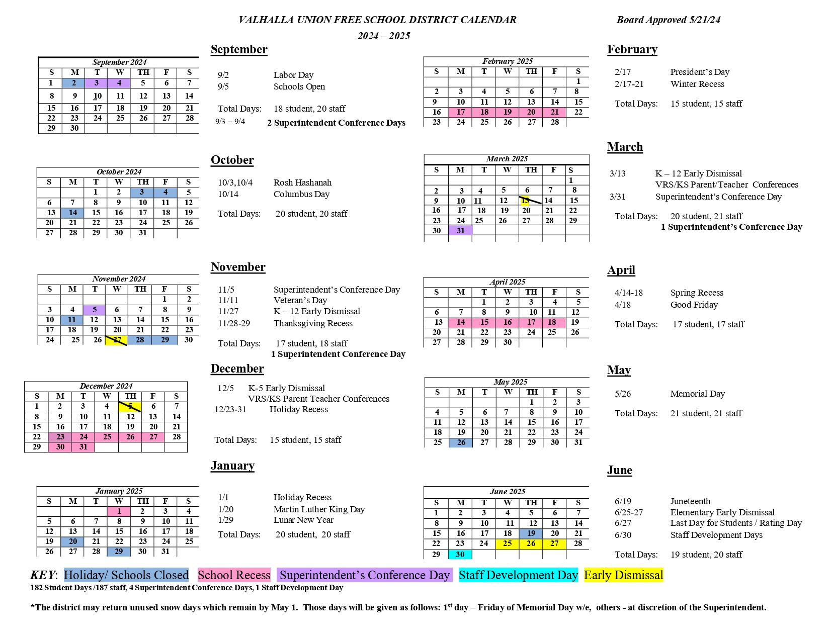 VALHALLA UFSD Calendar 25 26 pdf REVISED EduCounty