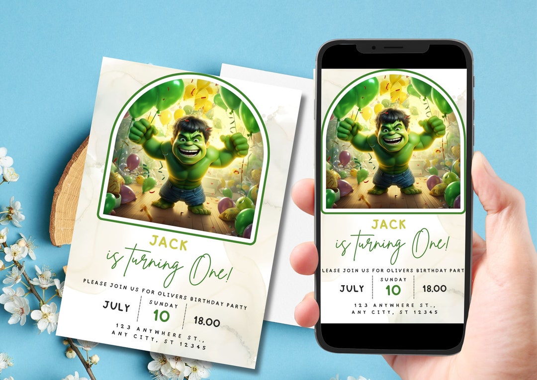 Cute Hulk Birthday Invitation Template Digital Kids Party Template