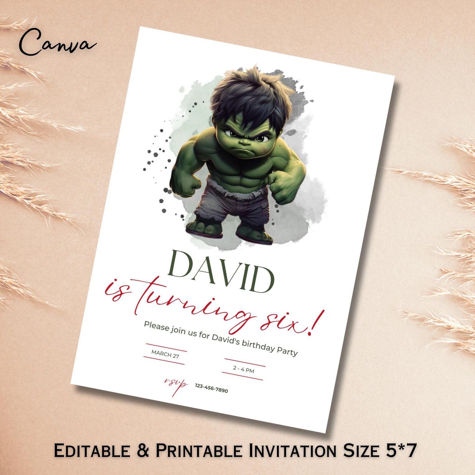 FREE Incredible Hulk Invitation Editable and Customizable WHATSAPP