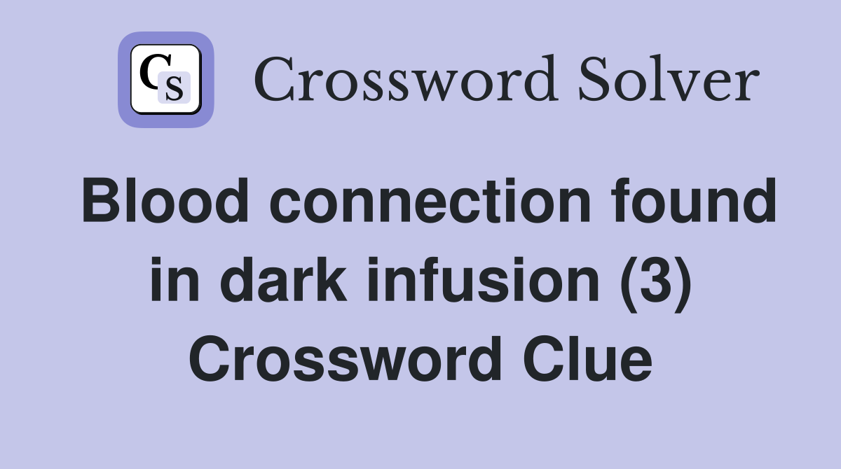 Blood connection found in dark infusion (3) Crossword Clue Answers