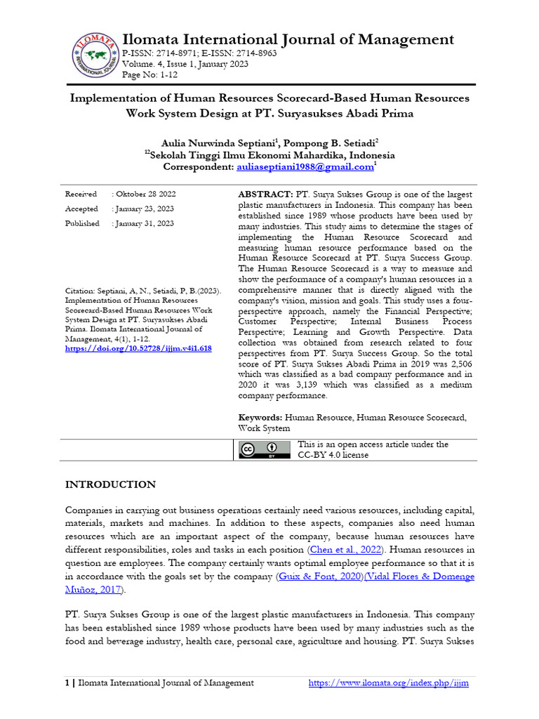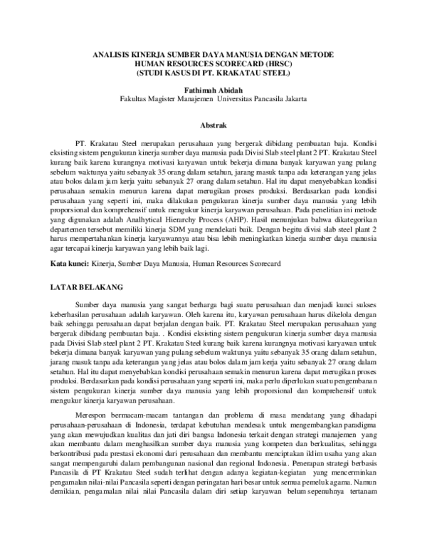 (PDF) Pengukuran Kinerja SDM Metode Human Resources Scorecard sebagai
