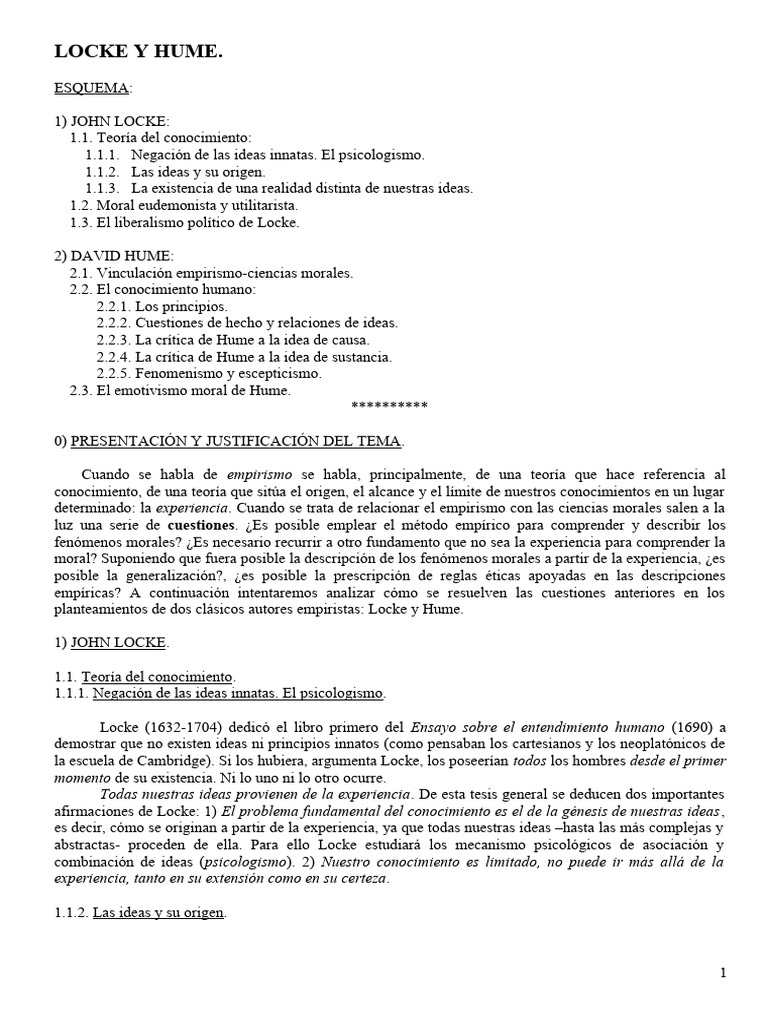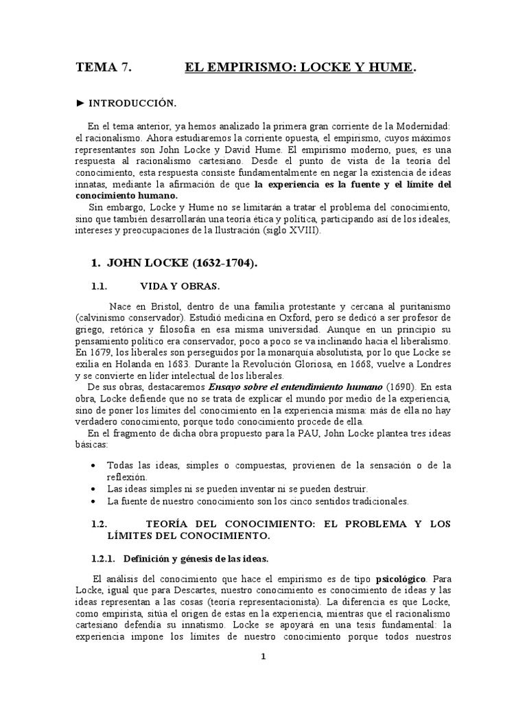 Tema 7 Locke y Hume PDF David Hume John Locke