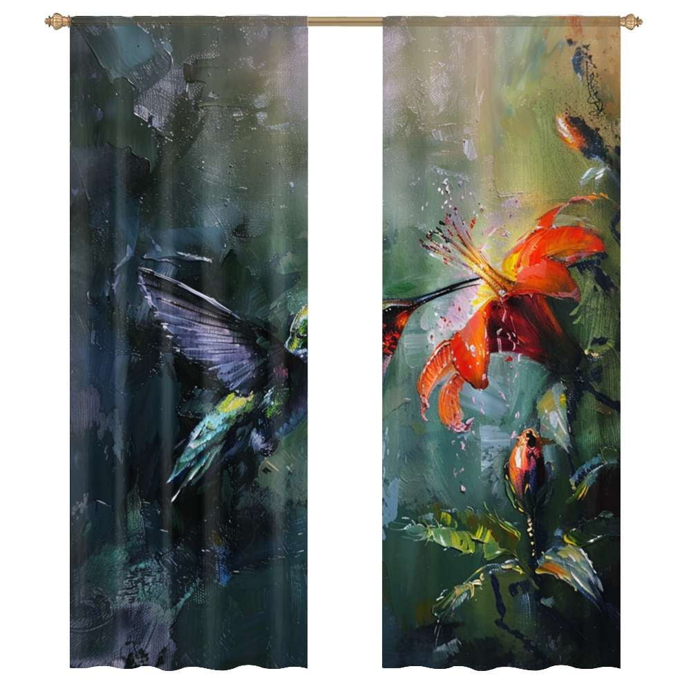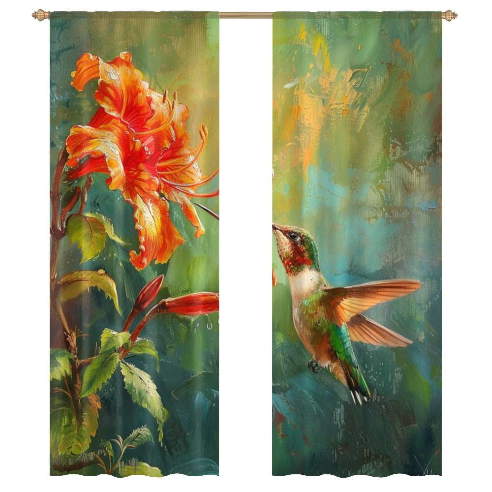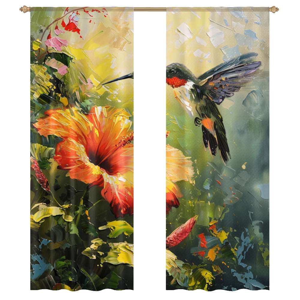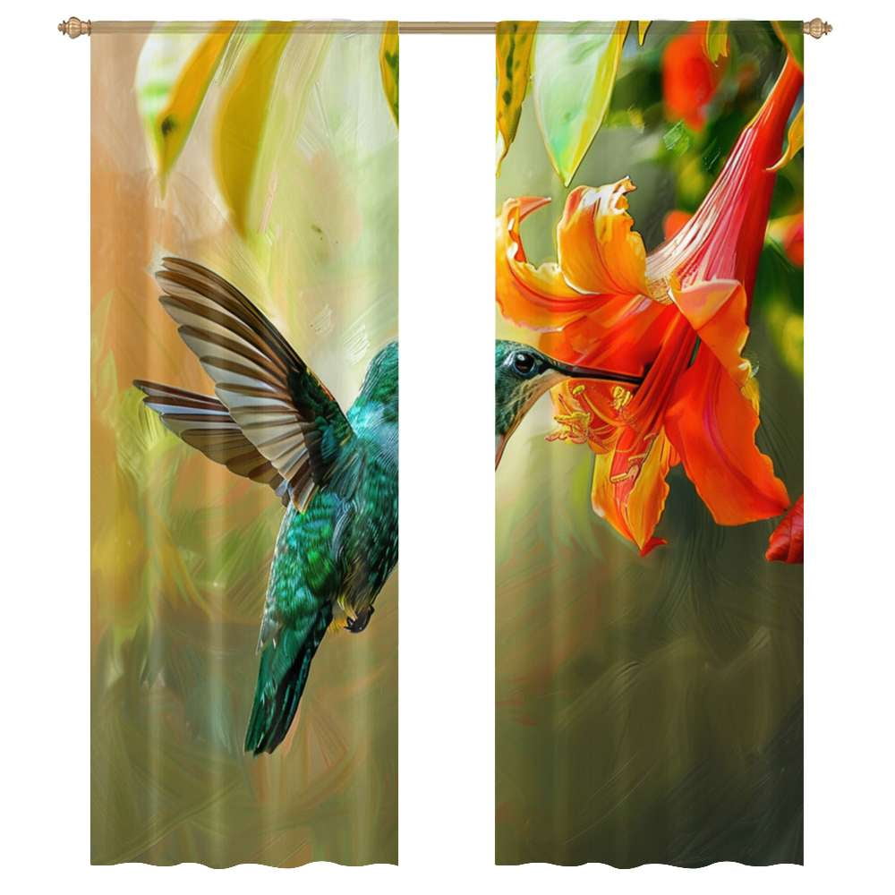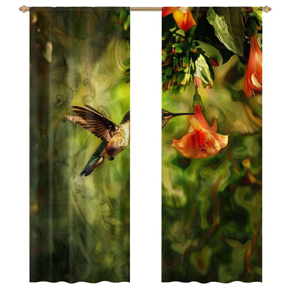 Colorful Hummingbird And Flowers Sheer Window Curtains for Living Room