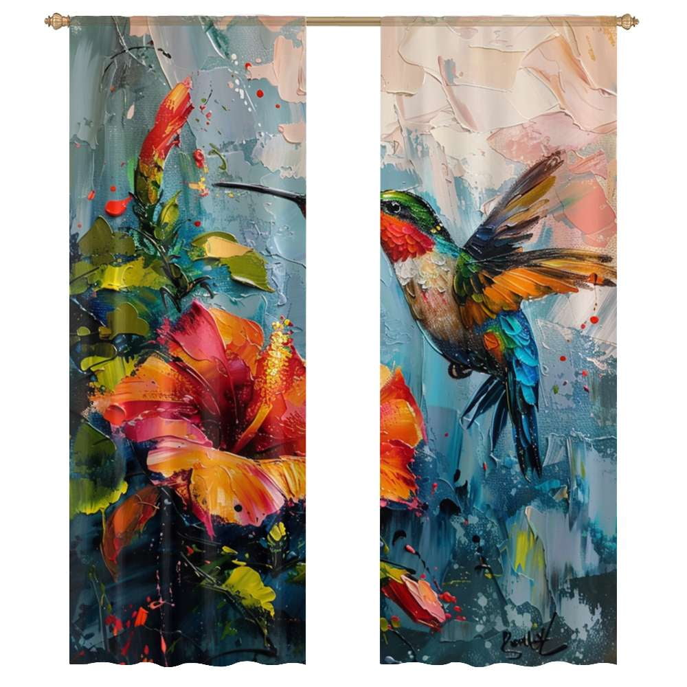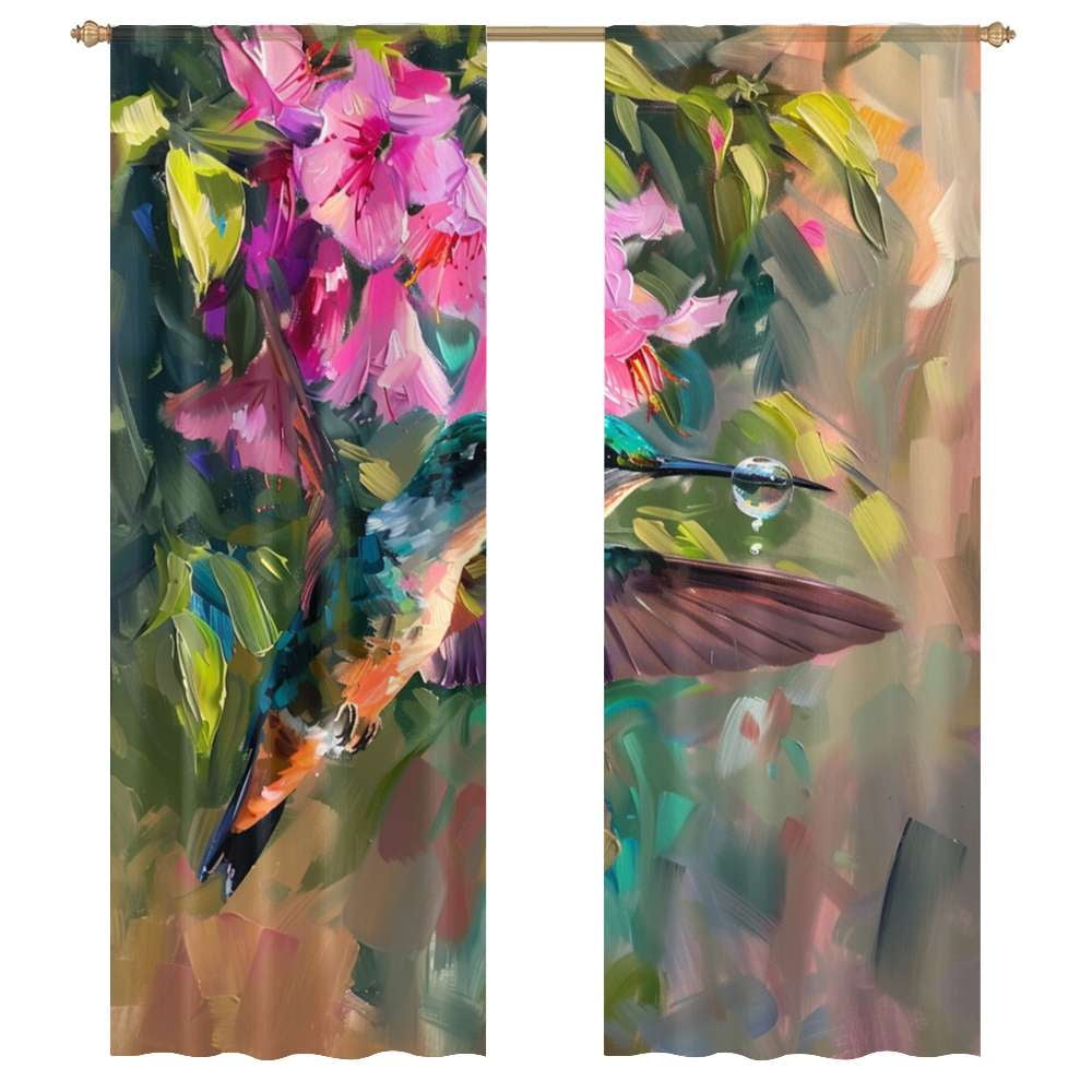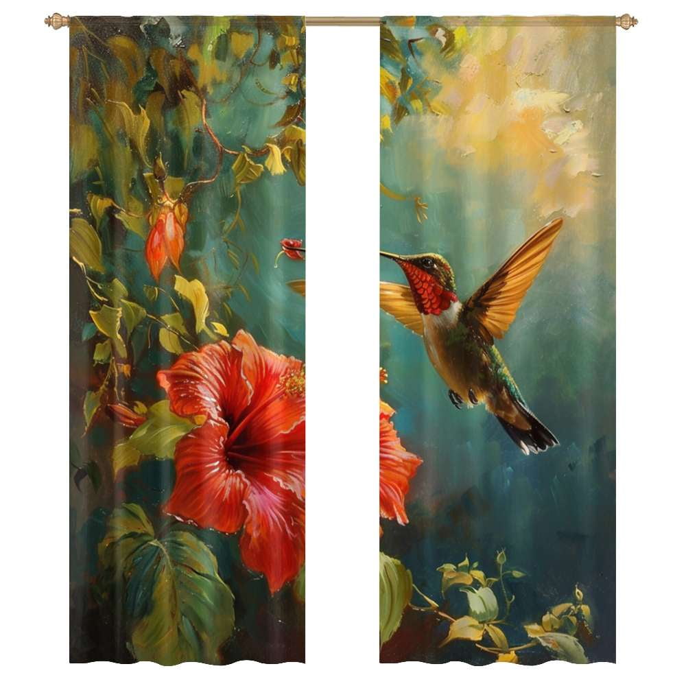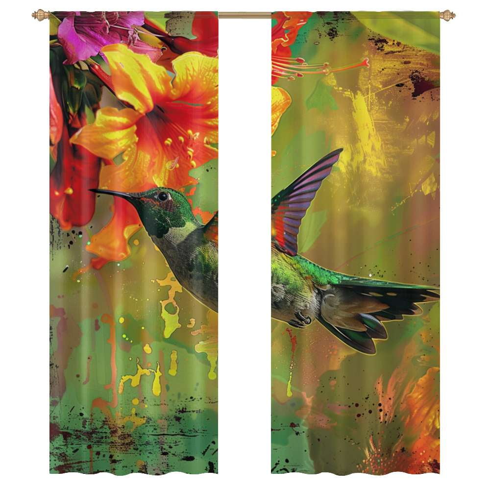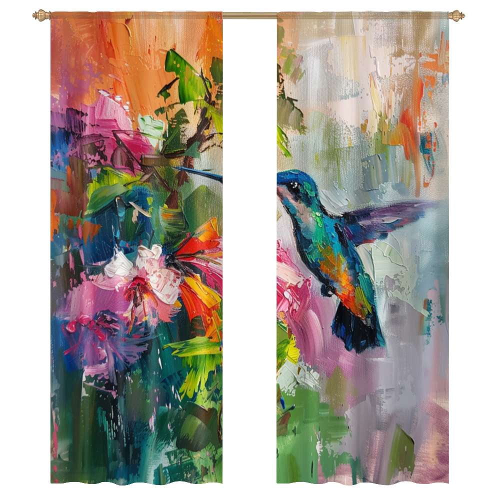 Colorful Hummingbird And Flowers Sheer Window Curtains for Living Room