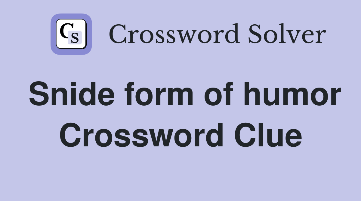 Snide form of humor Crossword Clue Answers Crossword Solver