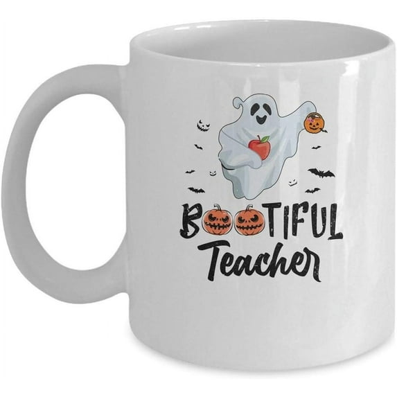 TeesPure Bootiful Teacher Funny Halloween Coffee Mug 11oz White