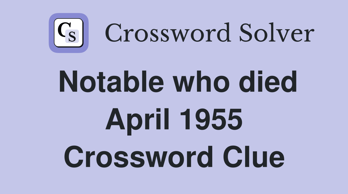 Notable who died April 1955 Crossword Clue Answers Crossword Solver