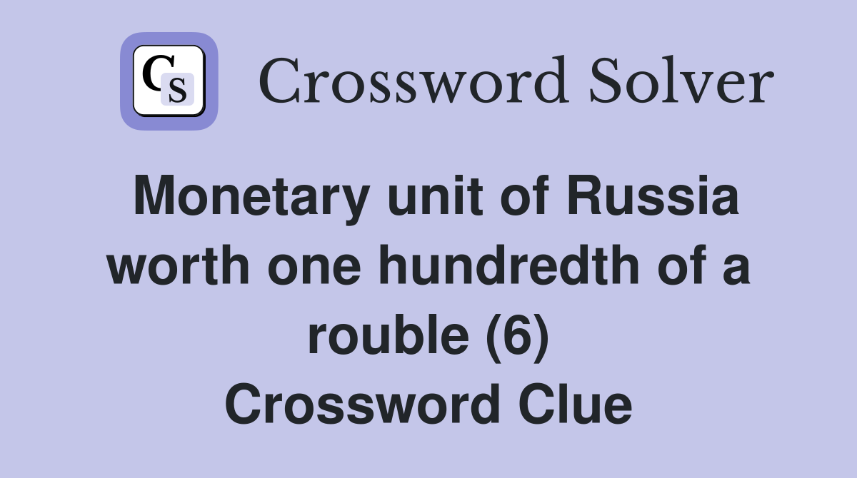 Monetary unit of Russia worth one hundredth of a rouble (6) Crossword