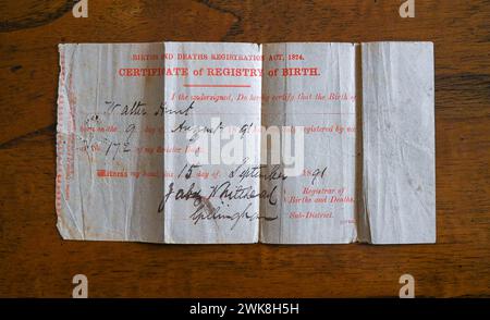 Copy of Birth Certificate for Walter Hunt in 1891 Stock Photo Alamy