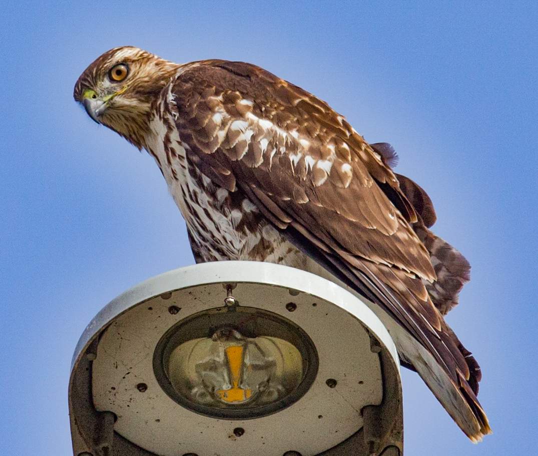 Solve A Red tailed Hawk on a lamp post jigsaw puzzle online with 238 pieces