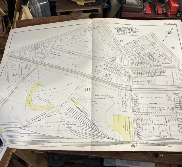 ANTIQUE STREET MAP Boston Huntington Baseball Field Original Home Red