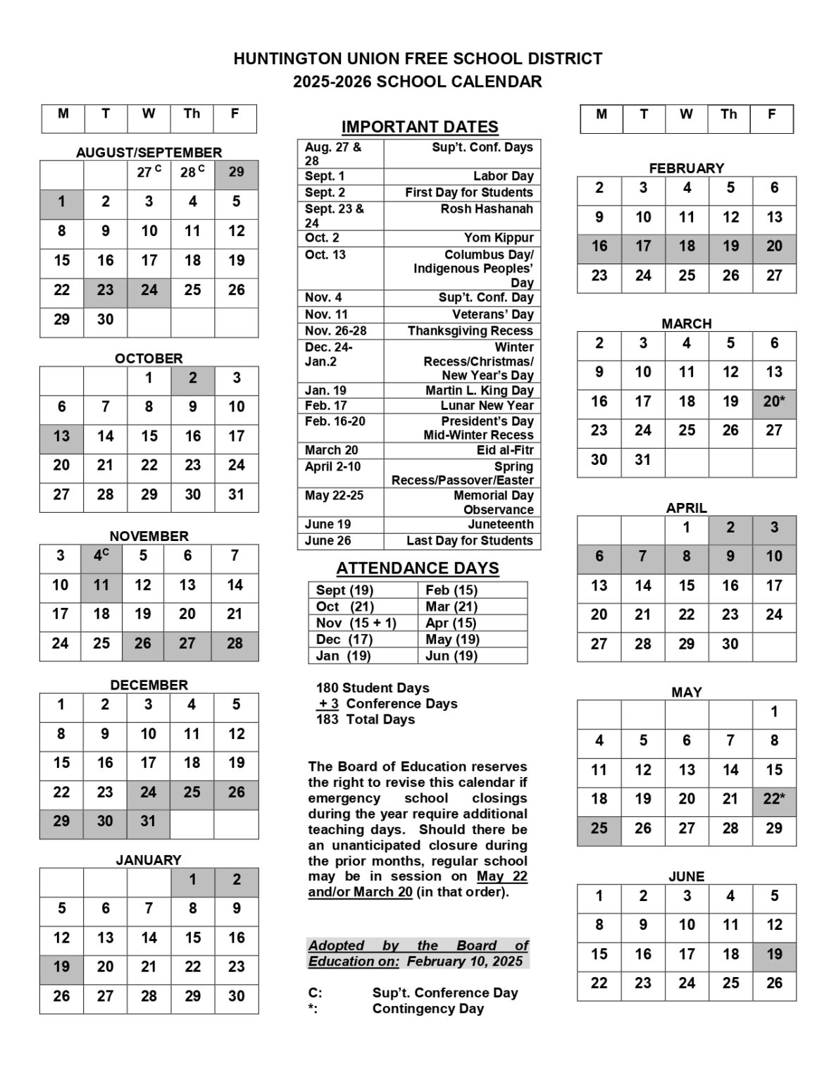 Huntington UFSD Calendar 25 26 REVISED EduCounty