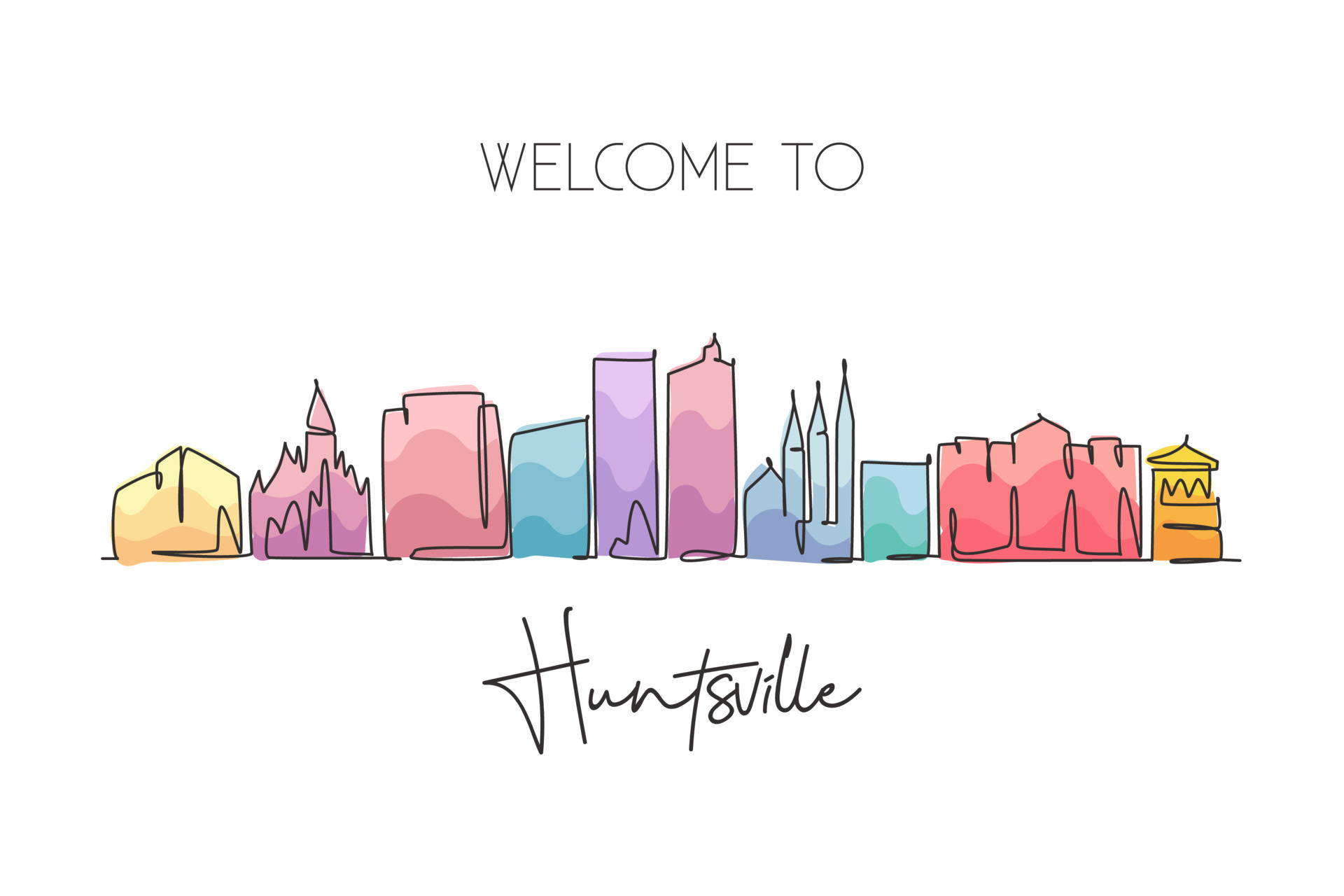 One continuous line drawing of Huntsville city skyline Alabama