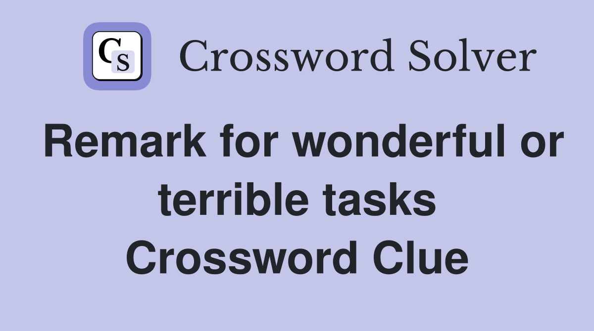 Remark for wonderful or terrible tasks Crossword Clue Answers