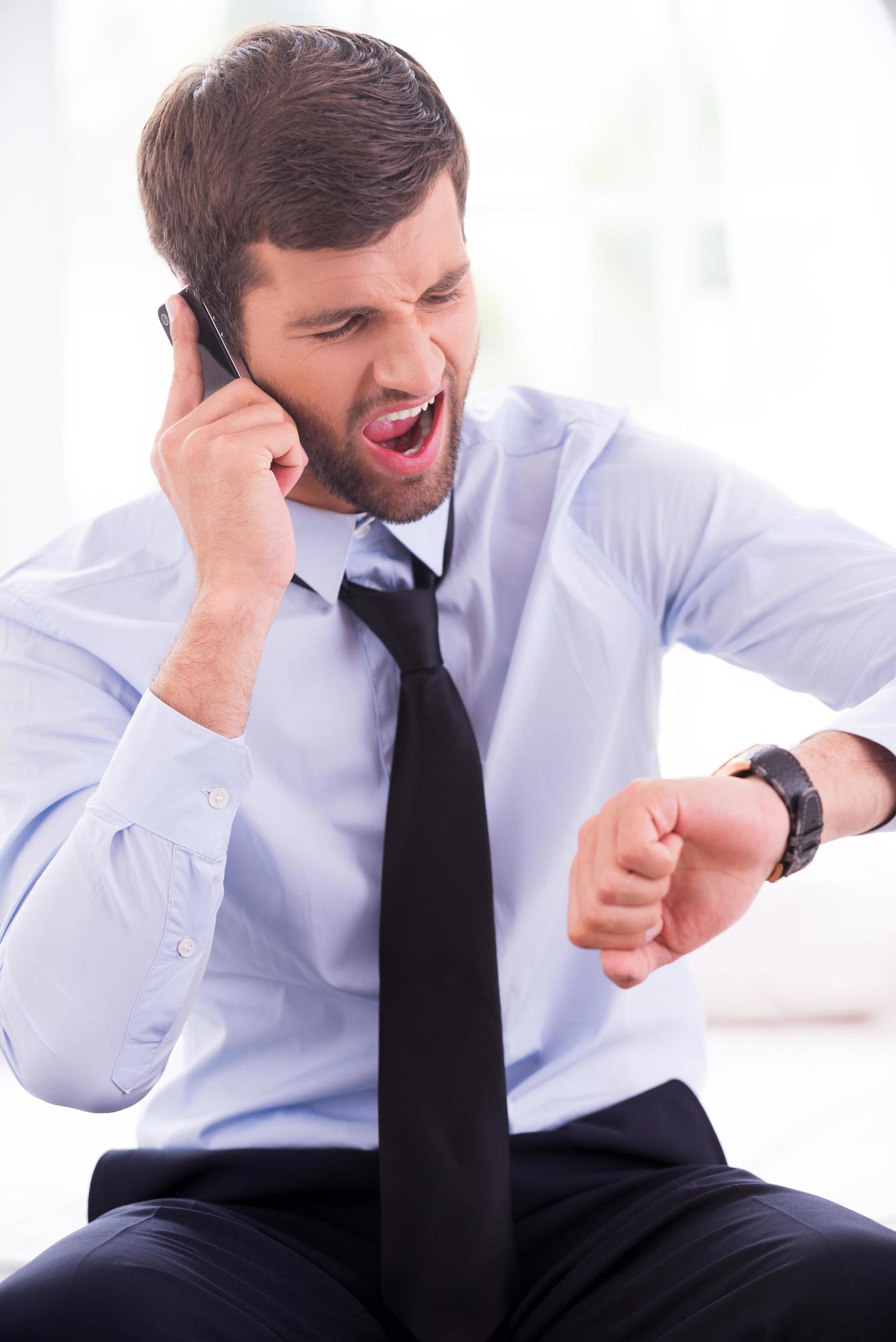 Businessman in a hurry Furious young man in shirt and tie checking the