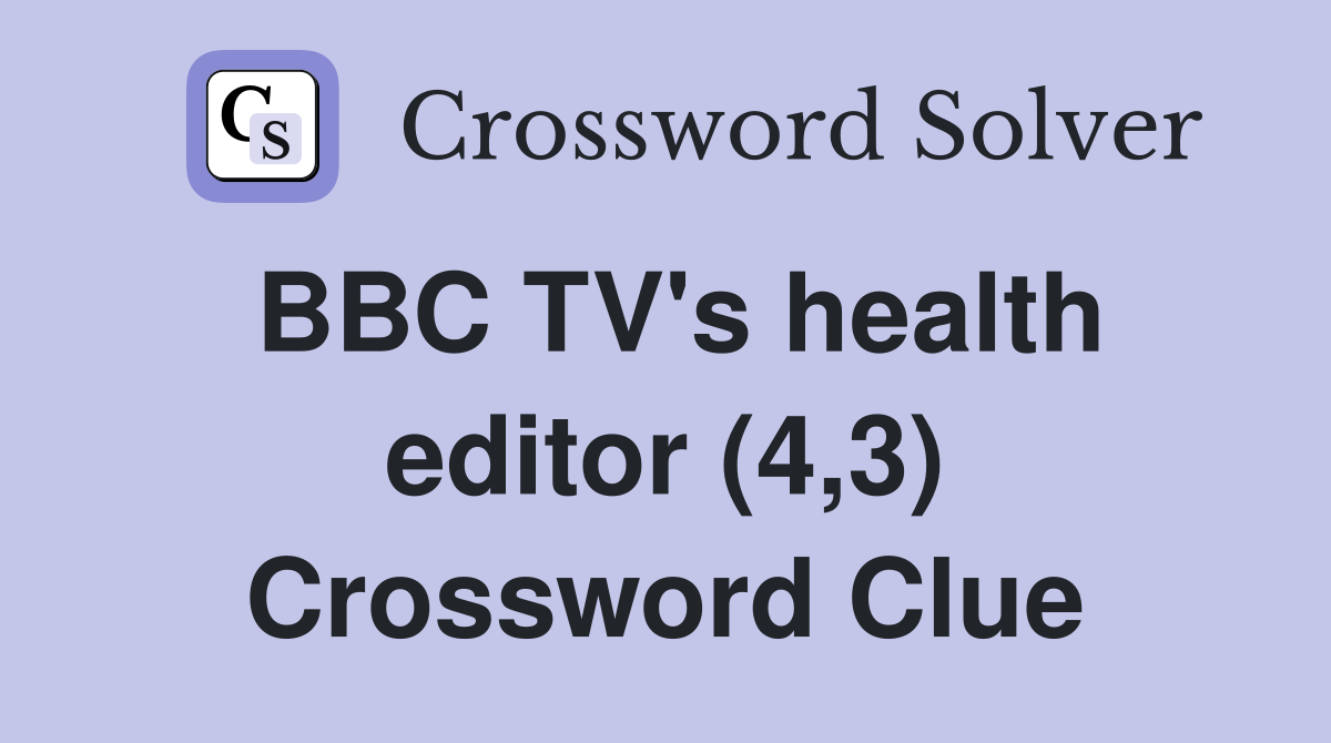 BBC TV #39 s health editor (4 3) Crossword Clue Answers Crossword Solver