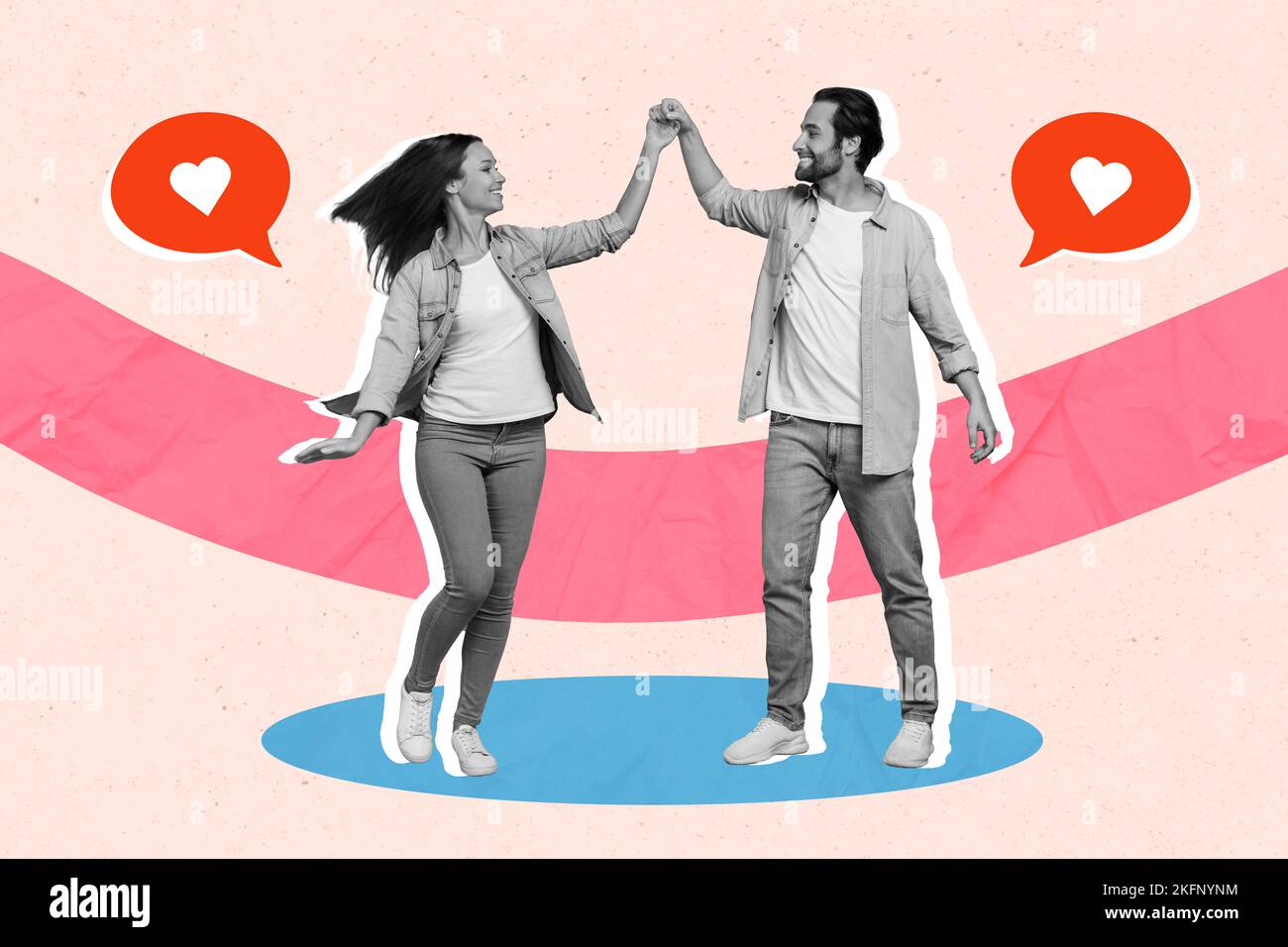 Creative Template Graphics Collage Image of Excited Husband Wife Draw