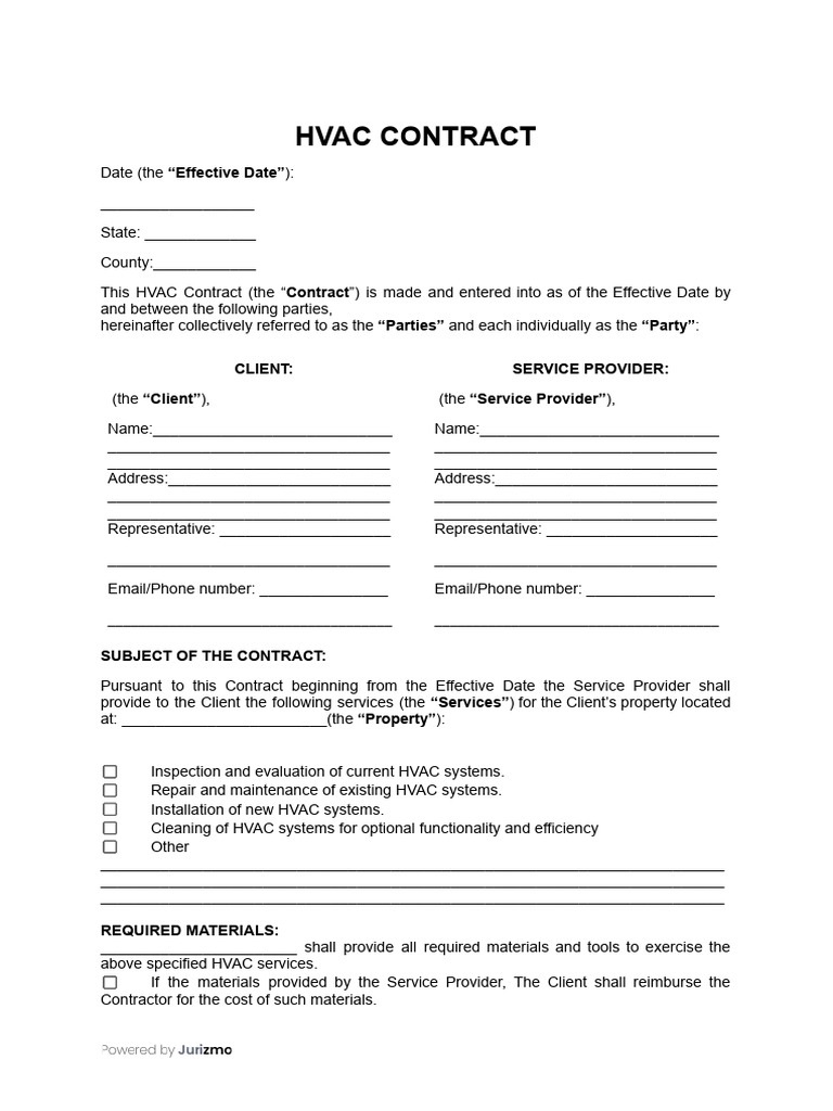Free HVAC Service Contract Template PDF Word Bogiolo