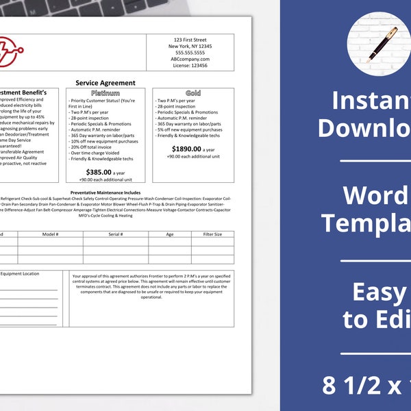 HVAC Maintenance Agreement in Microsoft Word Google Docs Etsy