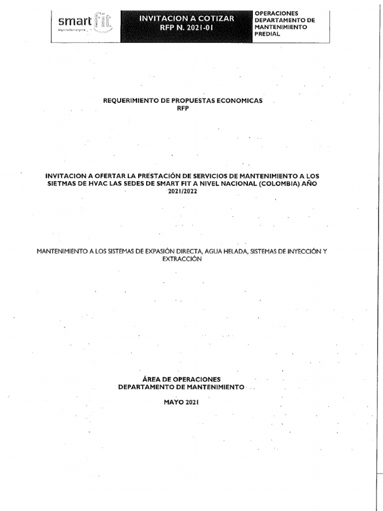 RFP Mantenimiento Sistema HVAC 2021 Smart Fit PDF