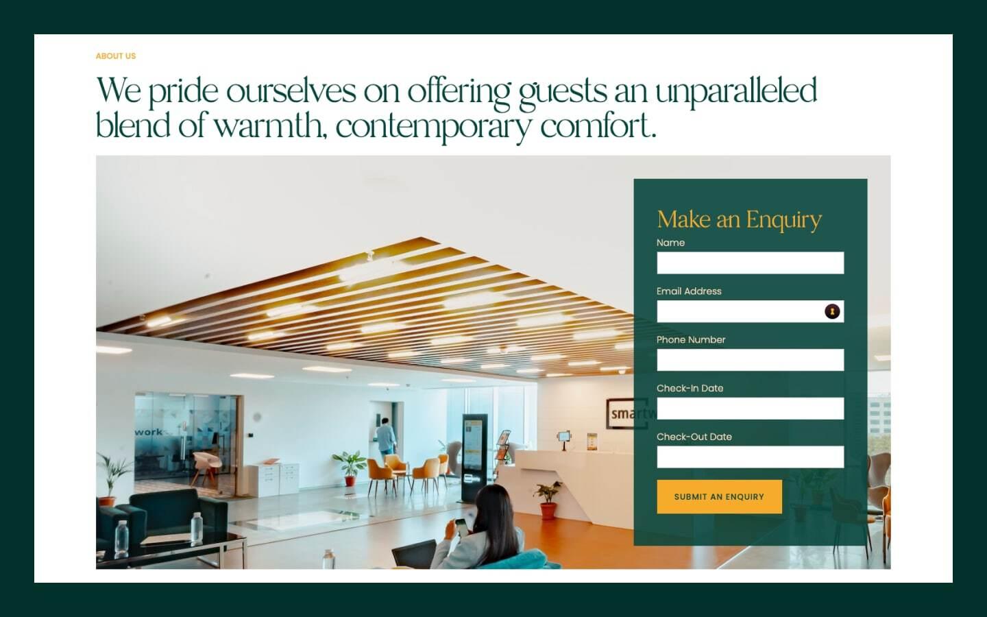 Landing page with big CTA / leads form Landing page Website inspo Hotel