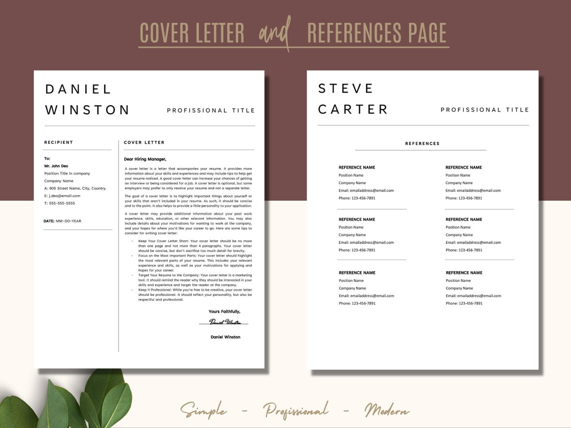 Hybrid Resume Template With Cover Letter and Reference Page Etsy Canada