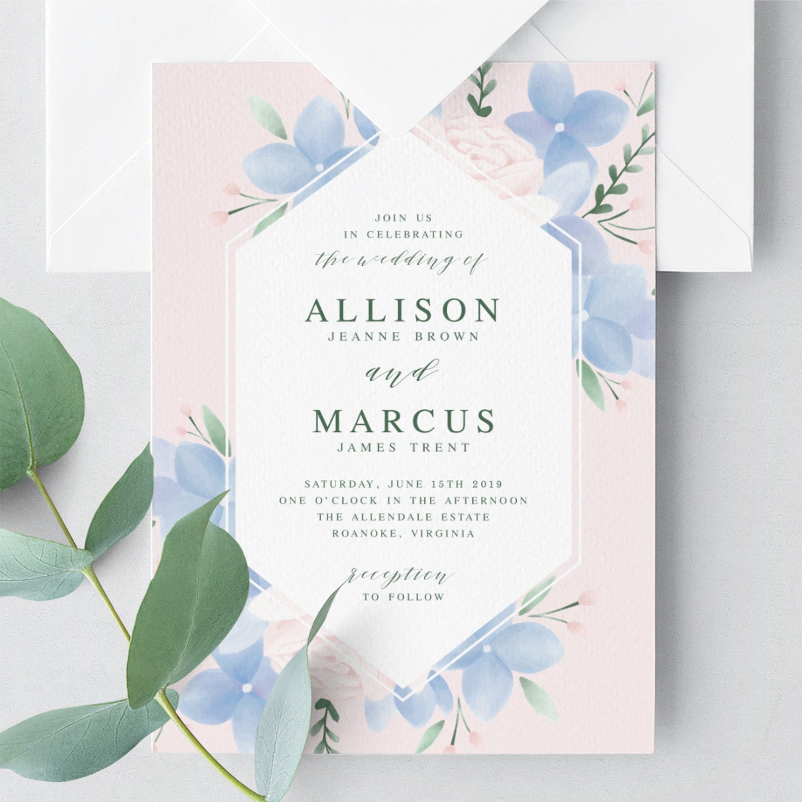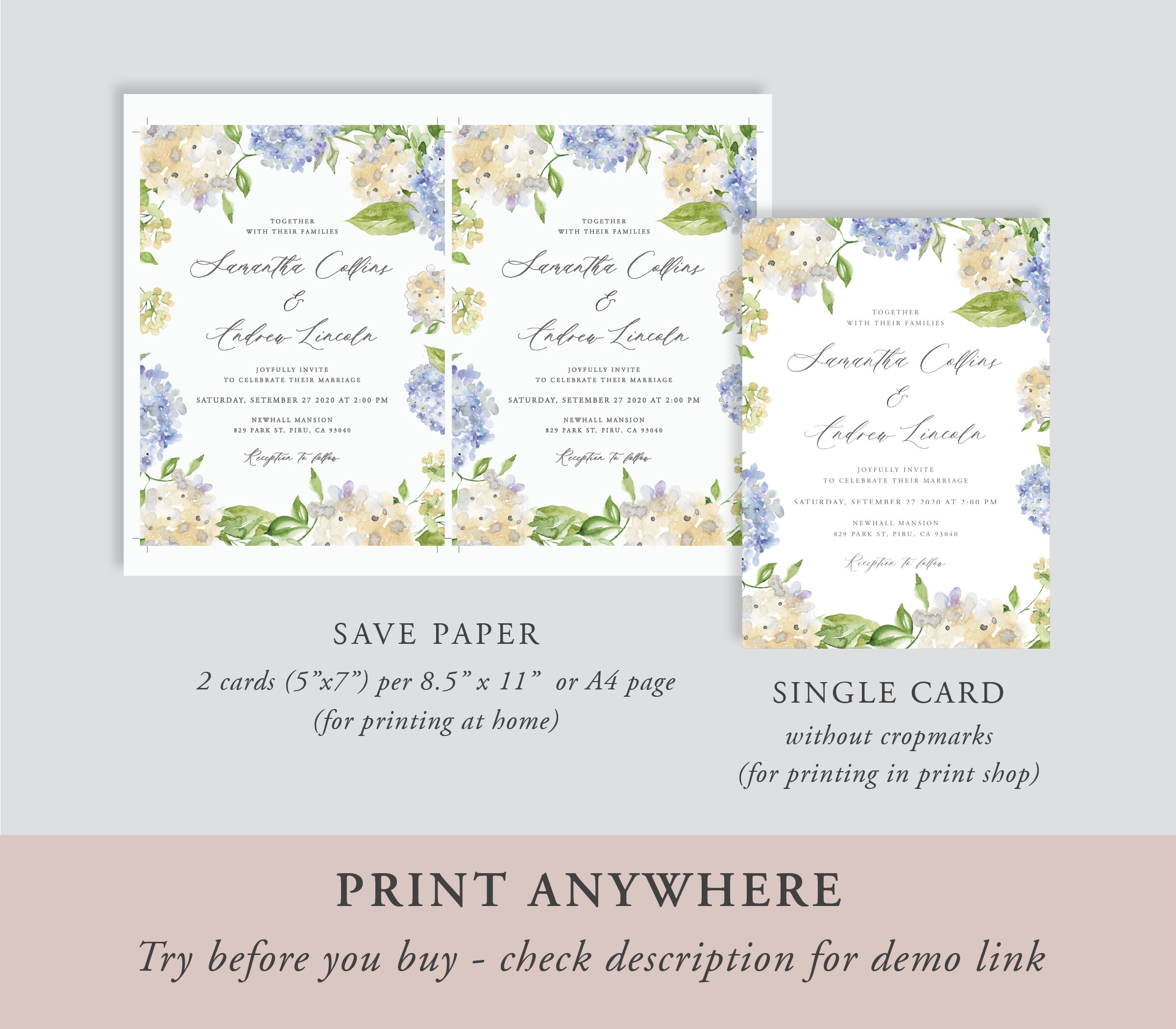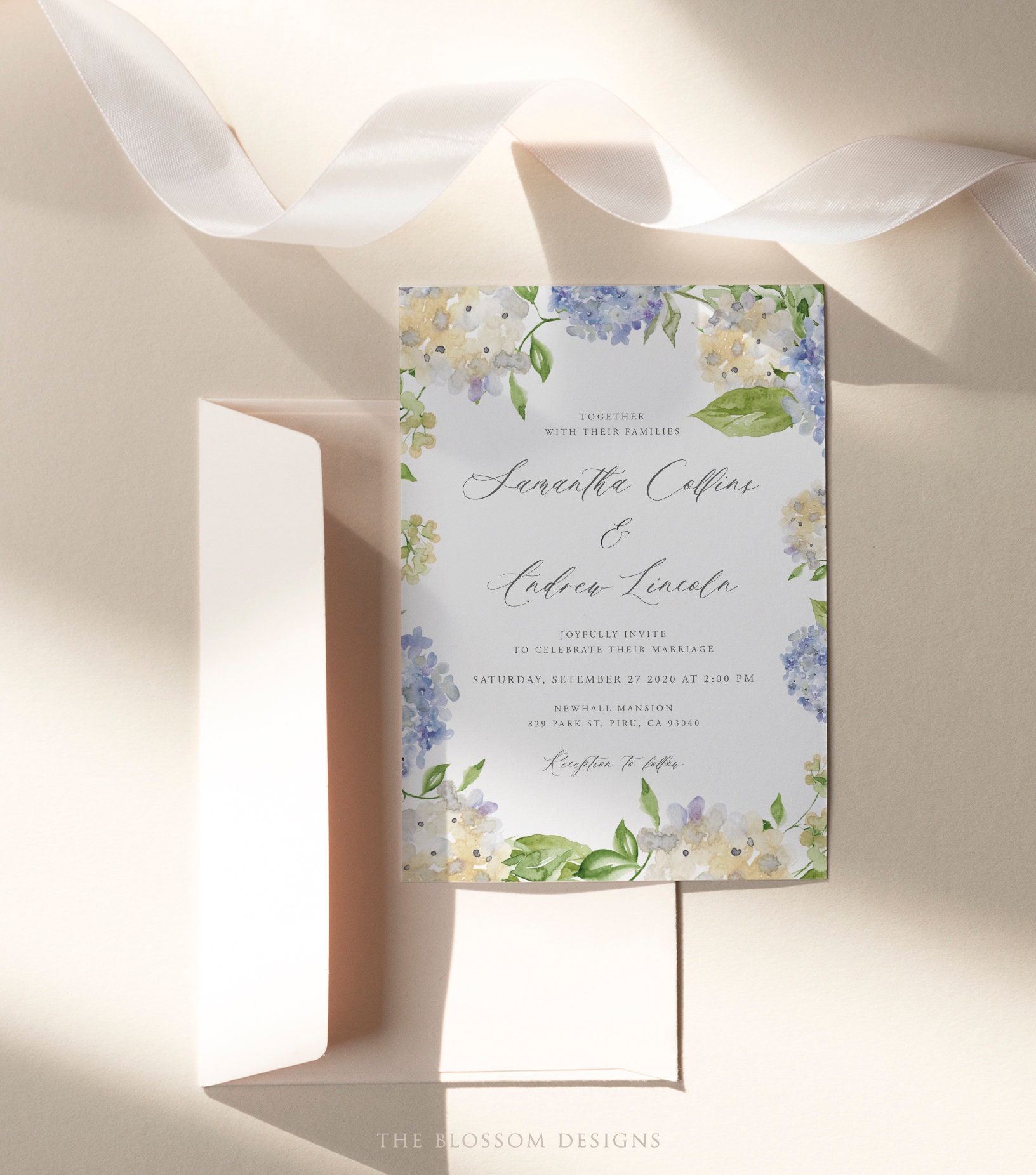 Hydrangea Wedding Invitation Template Wedding Invitation Etsy