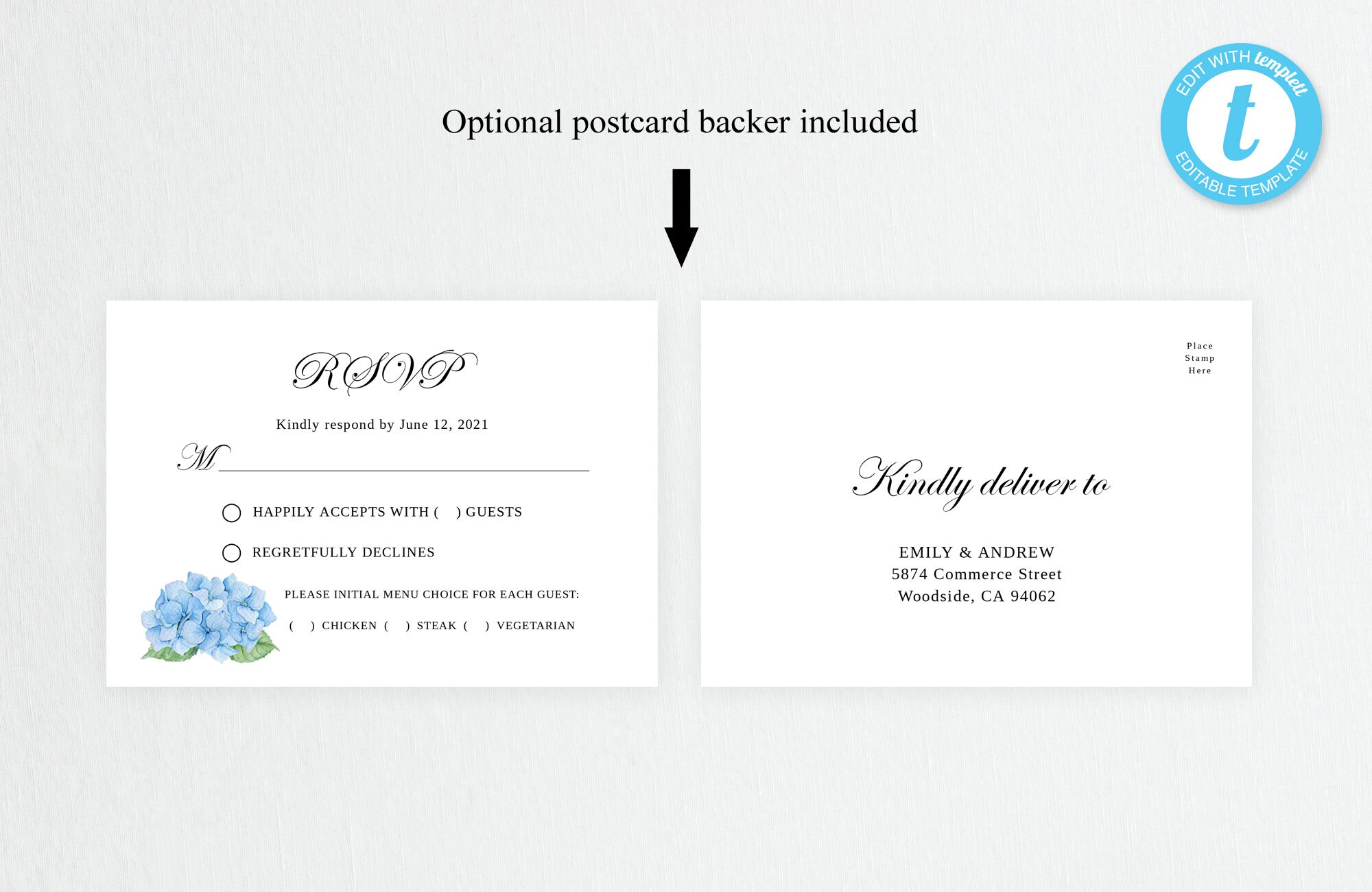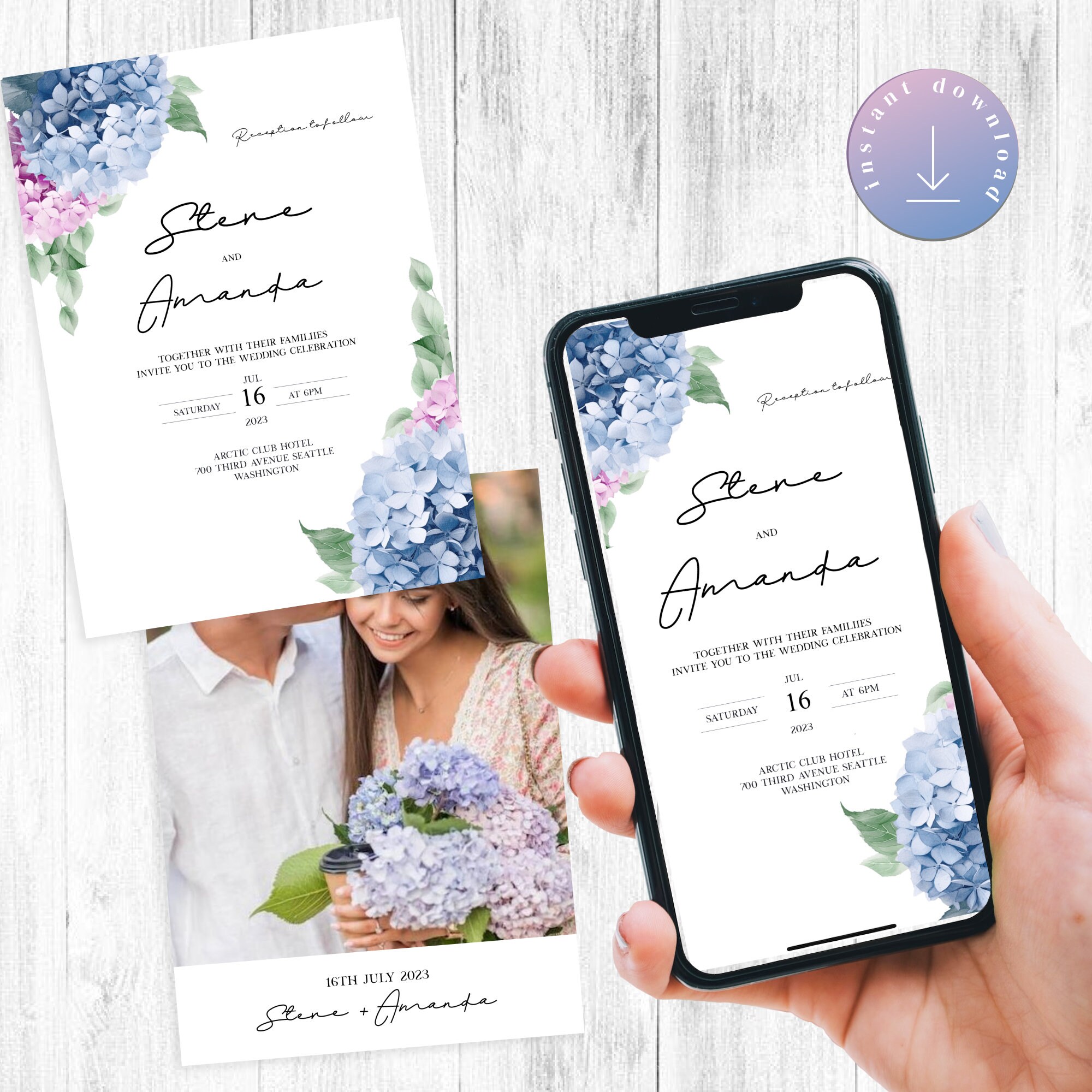 Hydrangea Wedding Invitation Template Set Garden Wedding Invite Suite