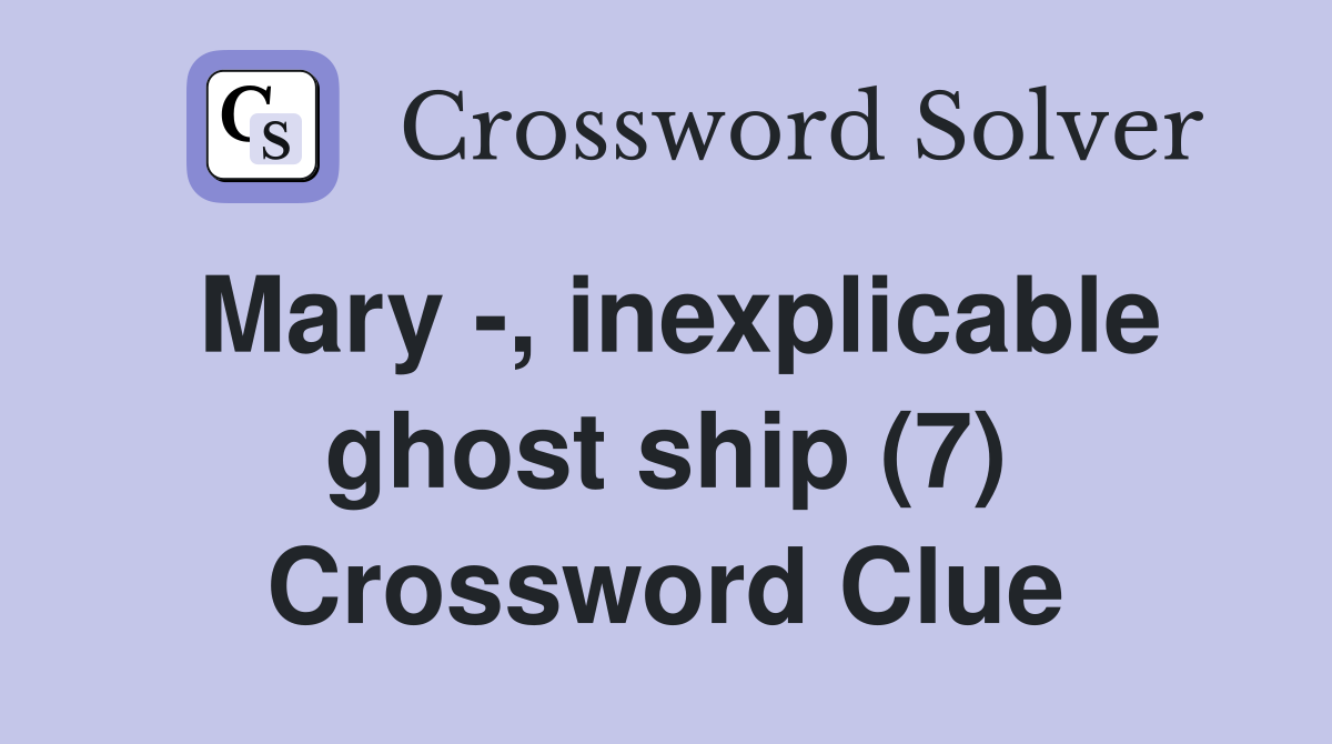 Mary inexplicable ghost ship (7) Crossword Clue Answers
