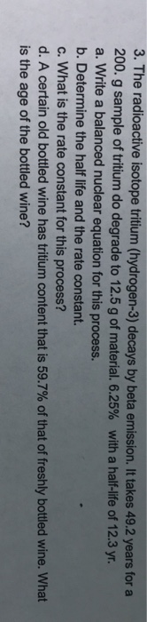 Solved The radioactive isotope tritium (hydrogen 3) decays Chegg com