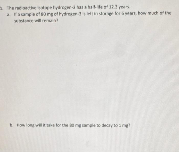 Solved 1 The radioactive isotope hydrogen 3 has a half life Chegg com