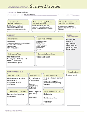 Hyperkalemia system disorder form ACTIVE LEARNING TEMPLATES System