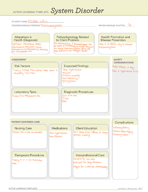SOLVED: ACTIVE LEARNING TEMPLATE: System Disorder STUDENT NAME