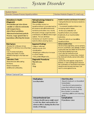Hypothyroidism Template ACTIVE LEARNING TEMPLATE System Disorder
