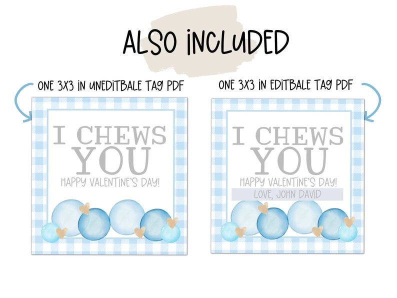 EDITABLE I Chews You Valentines Day Kids Gift Tag Valentines Etsy