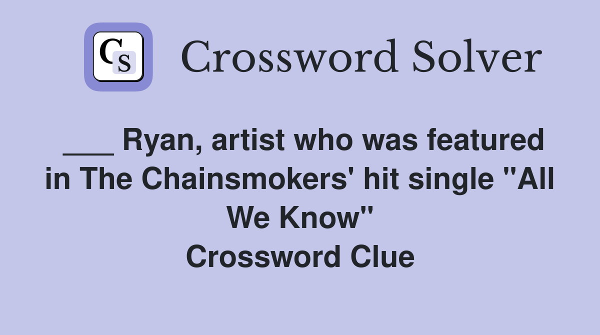 Ryan artist who was featured in The Chainsmokers #39 hit single quot All We