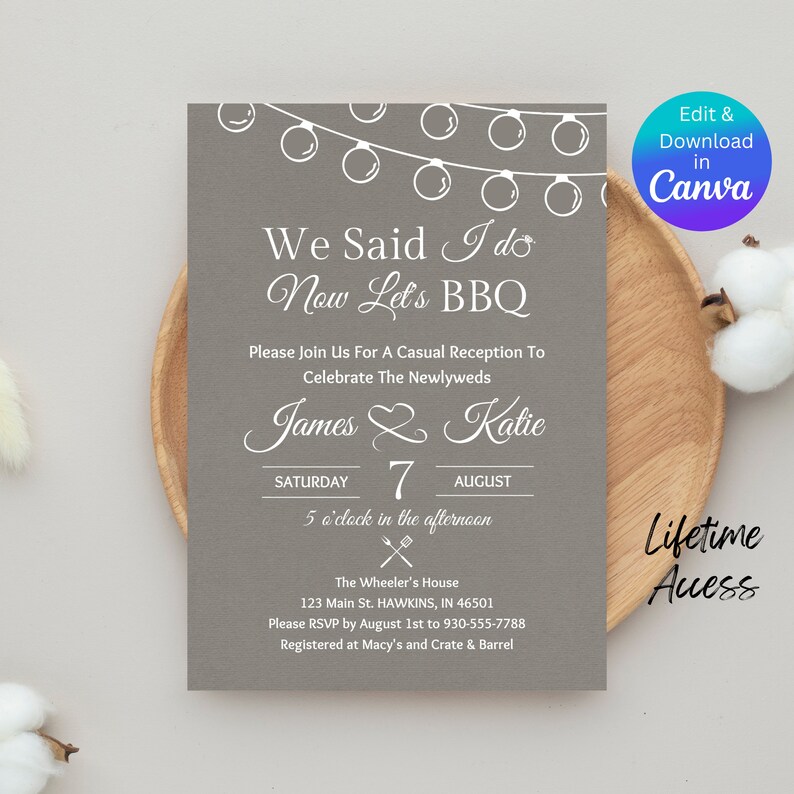 I Do BBQ Invitation Template Fully Editable Modern Wedding WDH070 Etsy