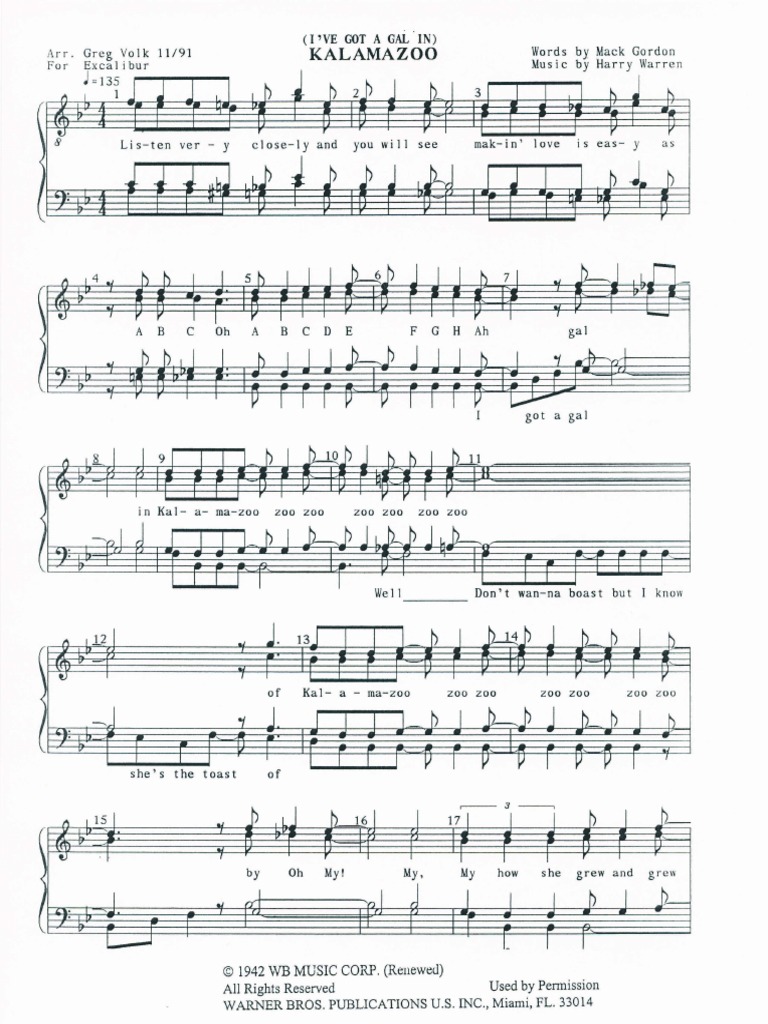Harry Warren I ve Got A Gal In Kalamazoo Sheet Music Notes Chords