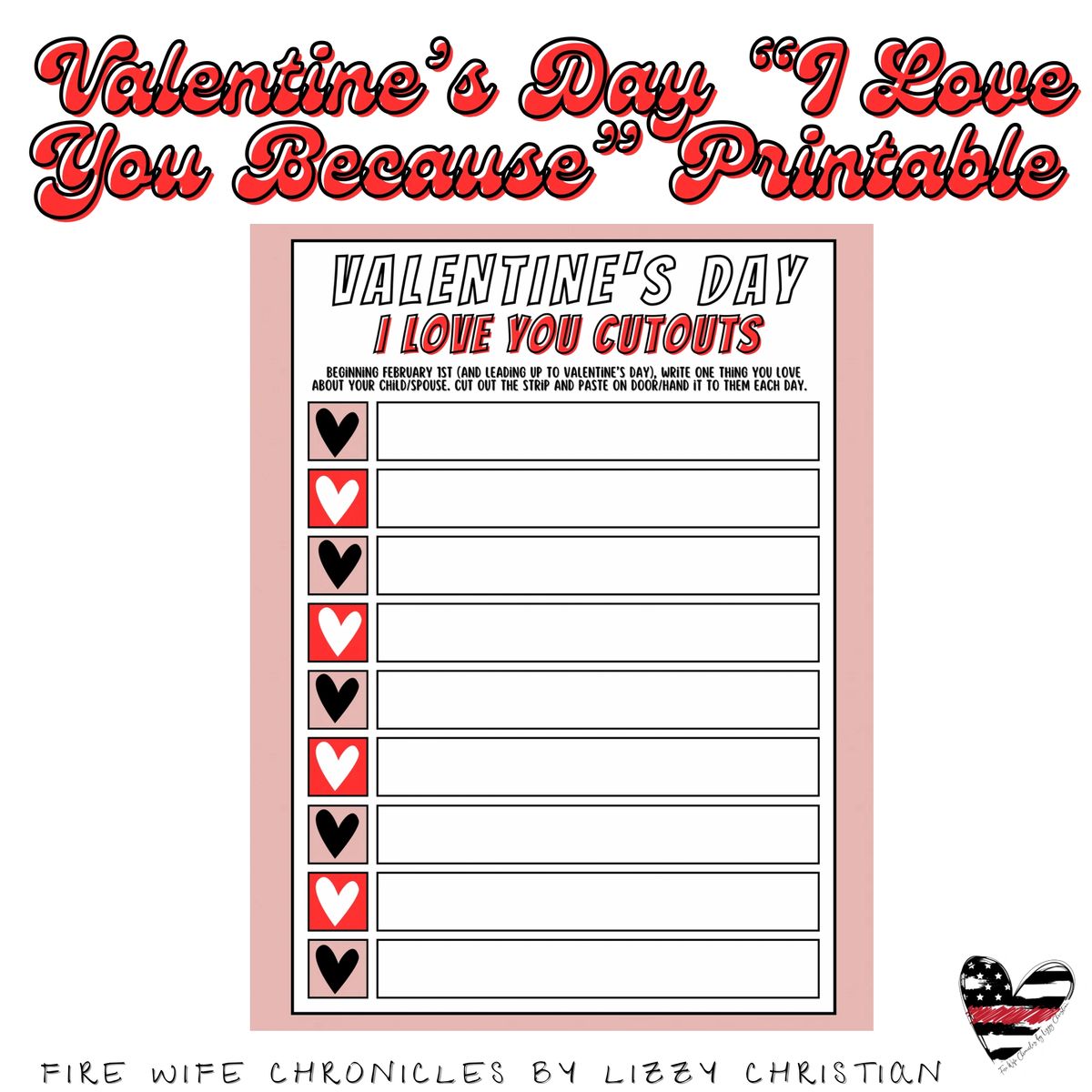 Valentine #39 s Day quot I Love You Because quot Printable