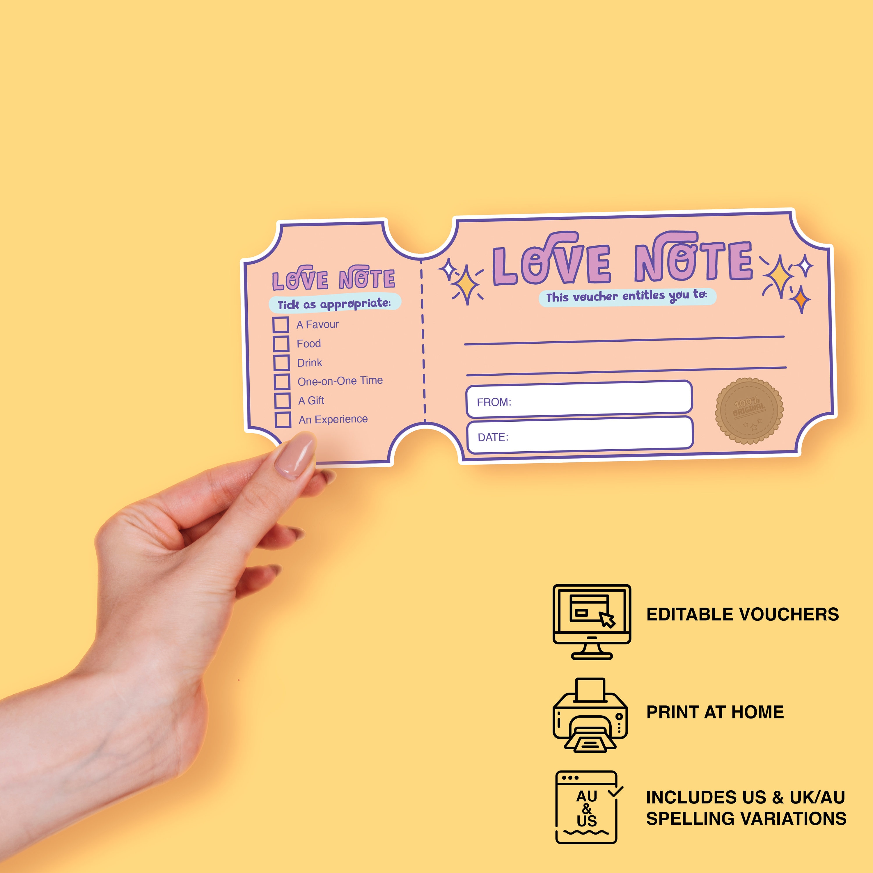 Printable Personalised IOU (I Owe You) Coupon Love Note Voucher
